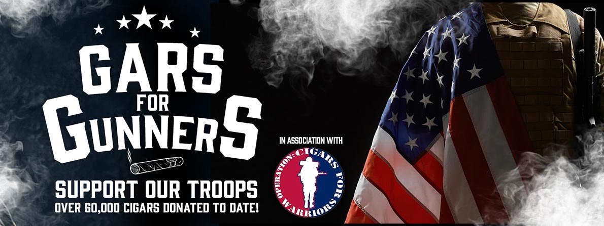 If you have been moved to give back to our brave troops, the "Gars for Gunners" program is a great and simple way to show your support. Simply select any of the specially priced 5 packs offered in this section and add them to your shopping cart. All donations will be sent to Robert Allan who is the Director of Operations at the Cigars for Warriors program. There, your generous donations will be distributed amongst the many requests they receive by deserving servicemen & servicewomen serving all over the world in active combat zones.