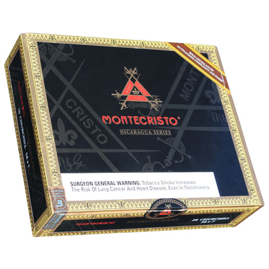 Montecristo Nicaragua Series consists of large-gauged cigars (at least at the cigar's launch), each using a Niaraguan puro blend (a specialty of A.J. Fernández). With the iconic Montecristo fleur de lis logo showcased in a new black-and-gold band design (complete with a "Nicaragua Series" sub-band), this is a much more sinister smoking experience than offered with traditional Montes. Expect a medium-full body, offering Nicaragua's signature flavors of fiery spice, cedar, cocoa, and accompanying nuances of brown sugar, toffee candy, and barnyard hay.